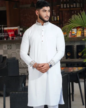 Original price was: 2,650.00৳ .795.00৳ Current price is: 795.00৳ . Add To Cart This product has multiple variants. The options may be chosen on the product pageMen’s Dobby White Designed Panjabi