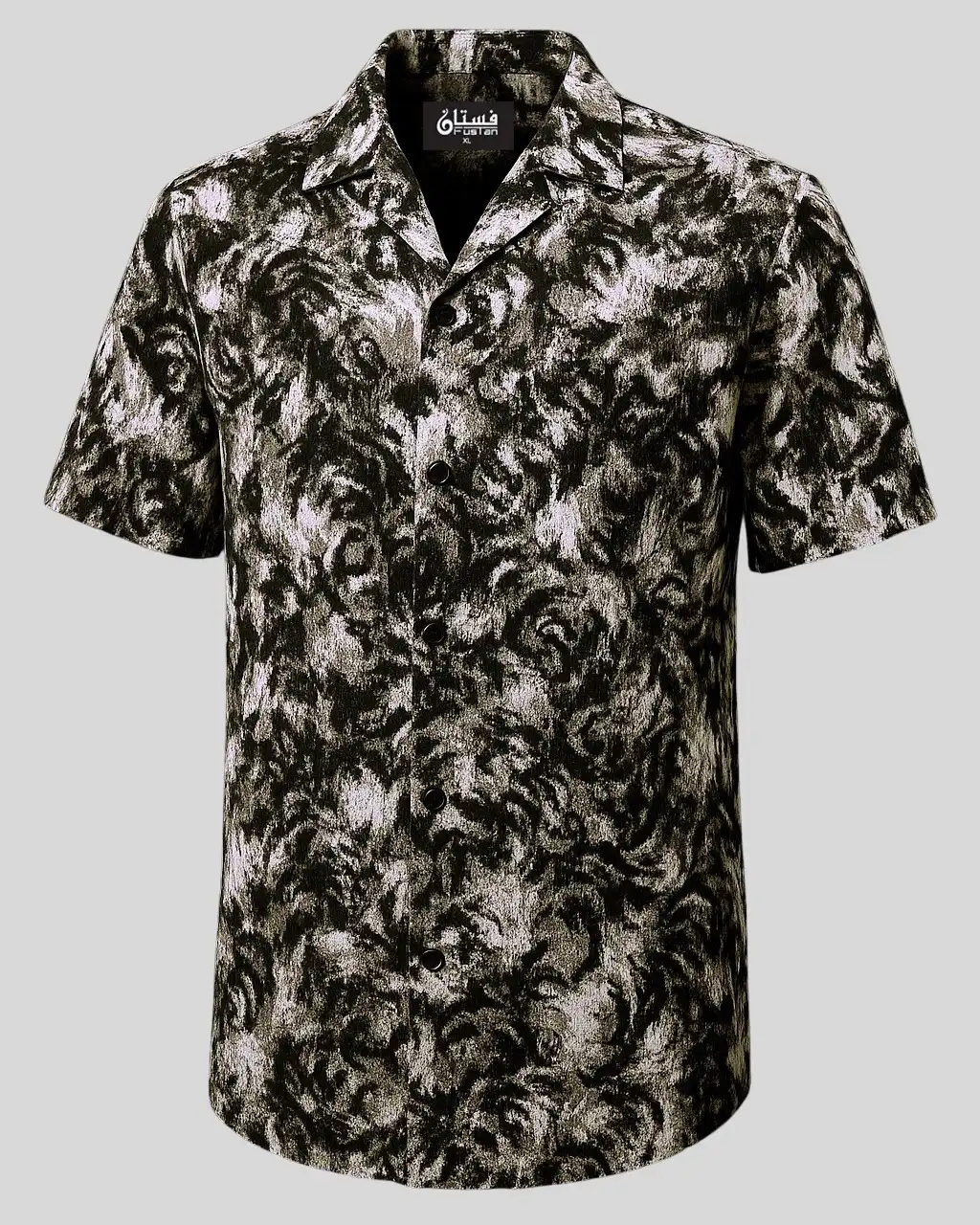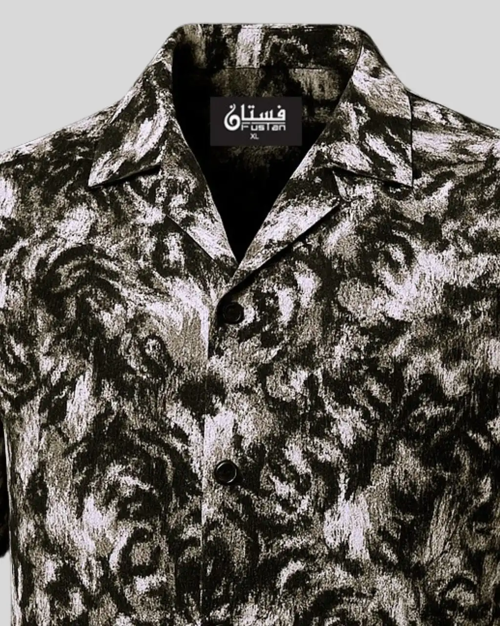 Refresh your wardrobe with Fustan’s Abstract Brushstroke Cuban-Collar Shirt, crafted from lightweight crinkle-crepe fabric. Designed for breathability and effortless style, it showcases our signature brushstroke motif in dusty black, forest green, and off-white—a modern yet timeless statement.