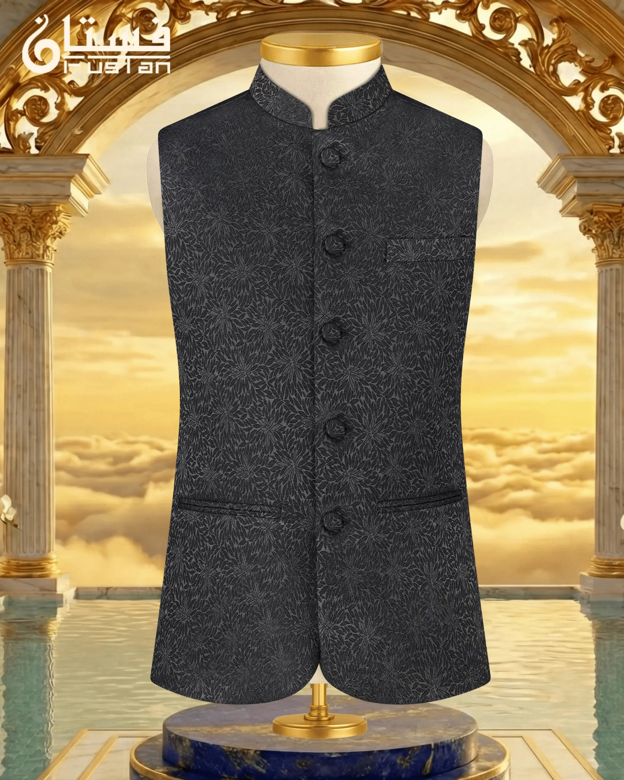 𝗙𝘂𝘀𝘁𝗮𝗻 presents a luxurious waistcoat crafted with intricate work and subtle detailing — the perfect blend of tradition and modern refinement.