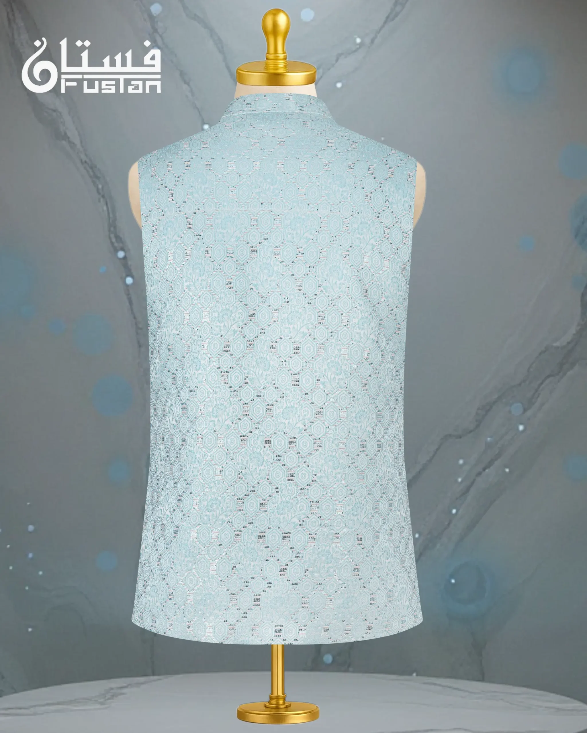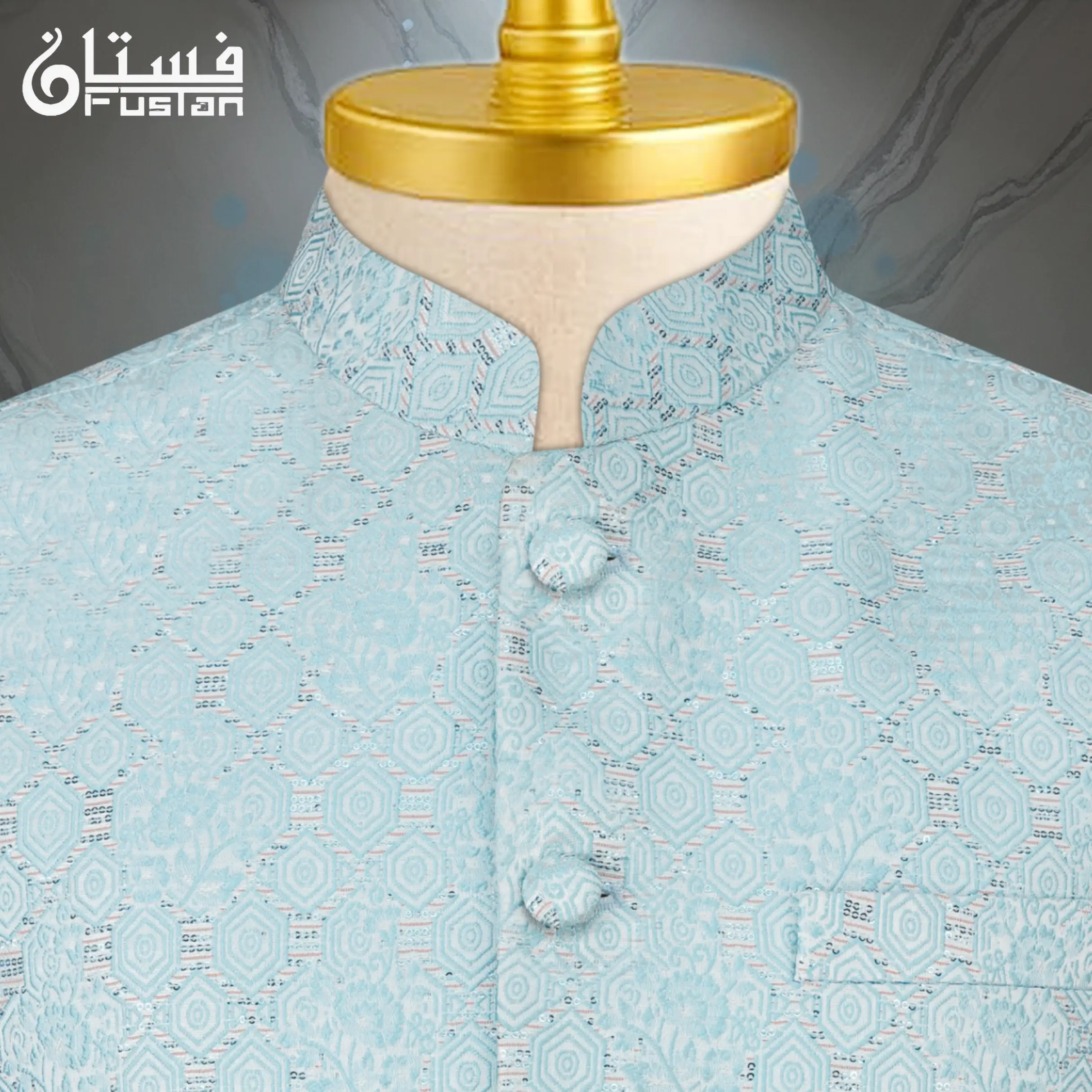 𝗙𝘂𝘀𝘁𝗮𝗻 presents a luxurious black jacquard prince coat crafted with intricate brocade and subtle sequin accents — the perfect blend of tradition and modern refinement.