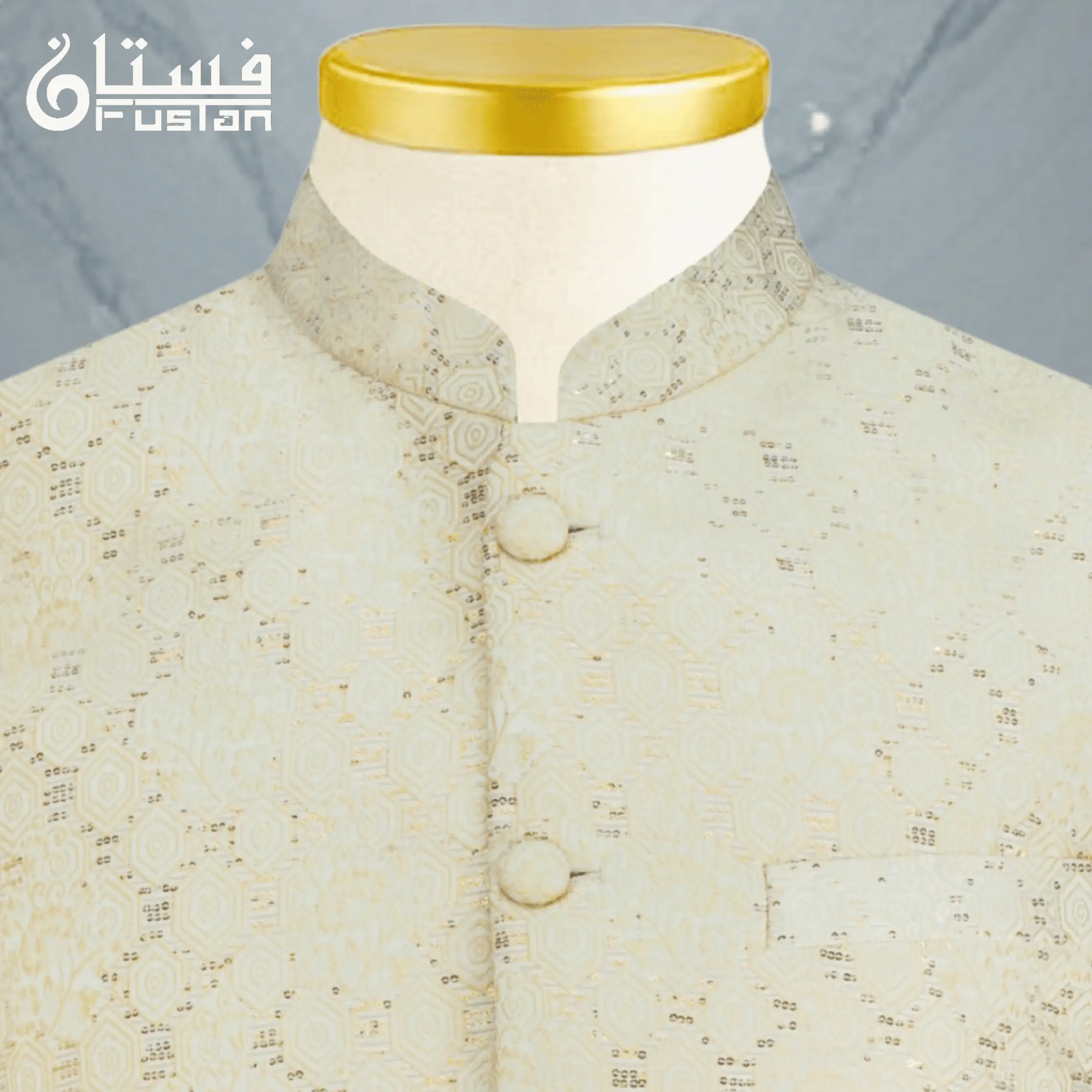 𝗙𝘂𝘀𝘁𝗮𝗻 presents a luxurious black jacquard prince coat crafted with intricate brocade and subtle sequin accents — the perfect blend of tradition and modern refinement.